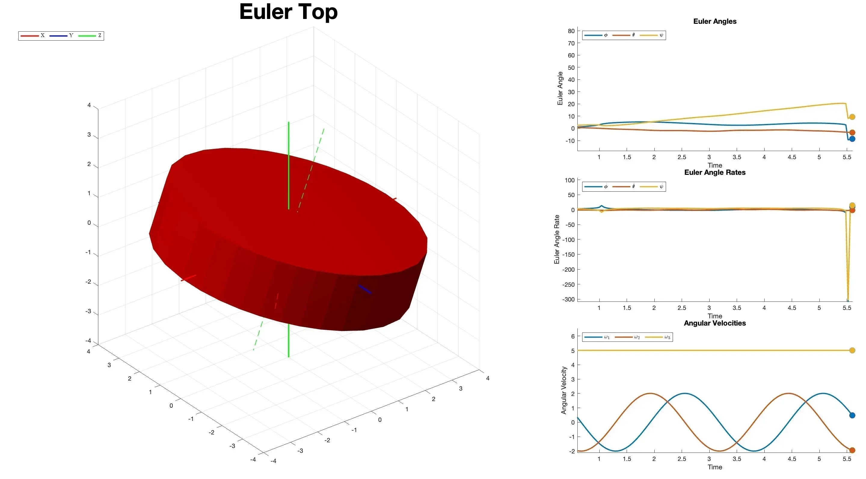 While I was aware that Euler angles in rotation suffer from singularities, and thus numerical instabilities in numerical simulations, this project gives my team and I a concrete opportunity to solve ths problem in a real product we are trying to deliver. Upon observing the spikes in our simulated Euler Angles, caused by infinitesimally small floating point numbers, we designated a special task group to resolve this issue numerically.
